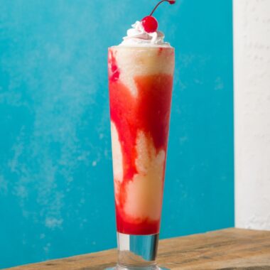 white rum, pineapple juice, strawberry and piña colada purée. topped with whipped cream and a cherry 15.00