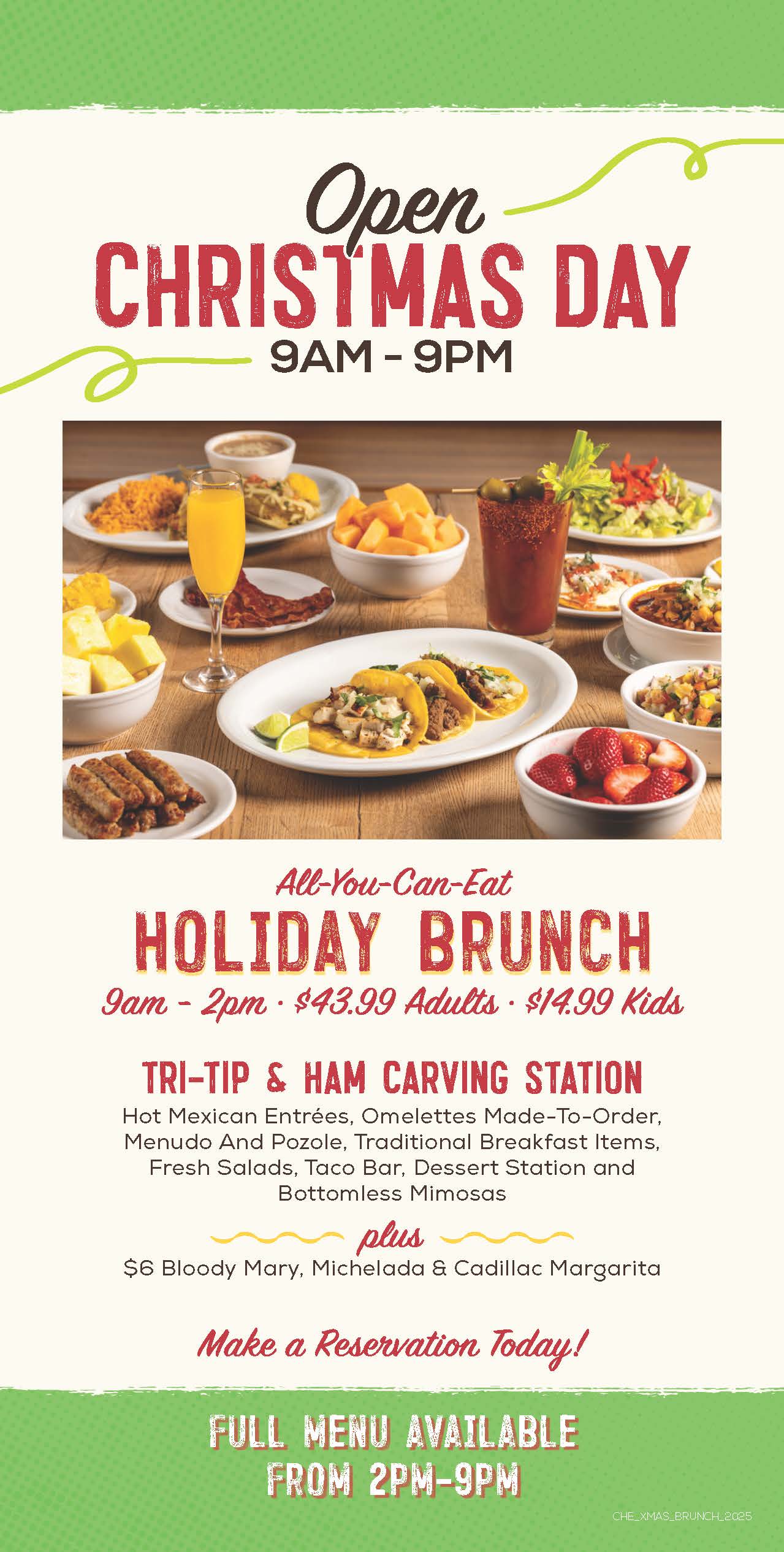 Chevy’s Arlington and Olivette locations will offer a 3-Course meal on Christmas